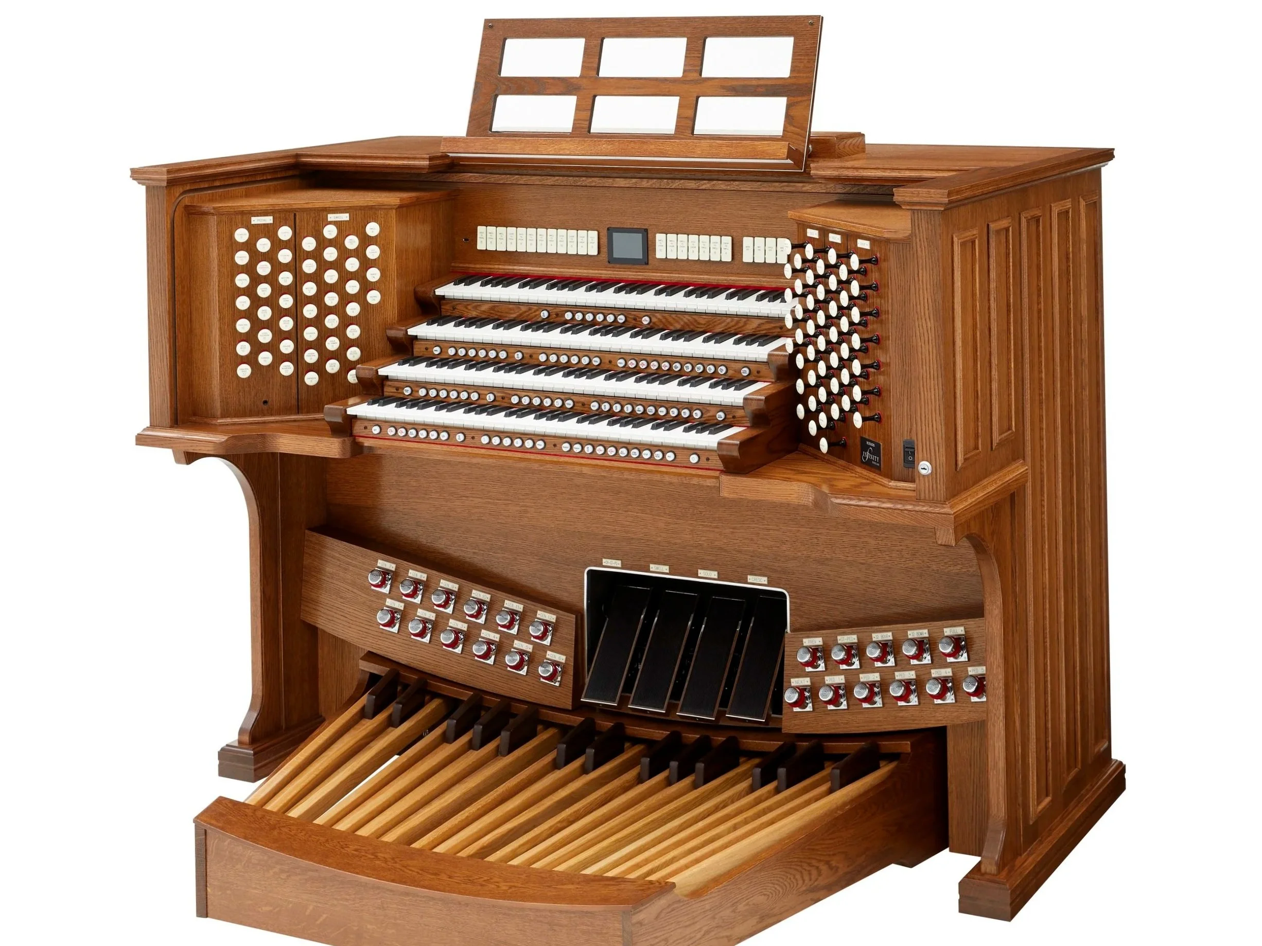For churches without room or budget for a traditional pipe organ, modern digital organs fulfill the role of providing traditional organ music while incorporating the latest in musical technology and sound.